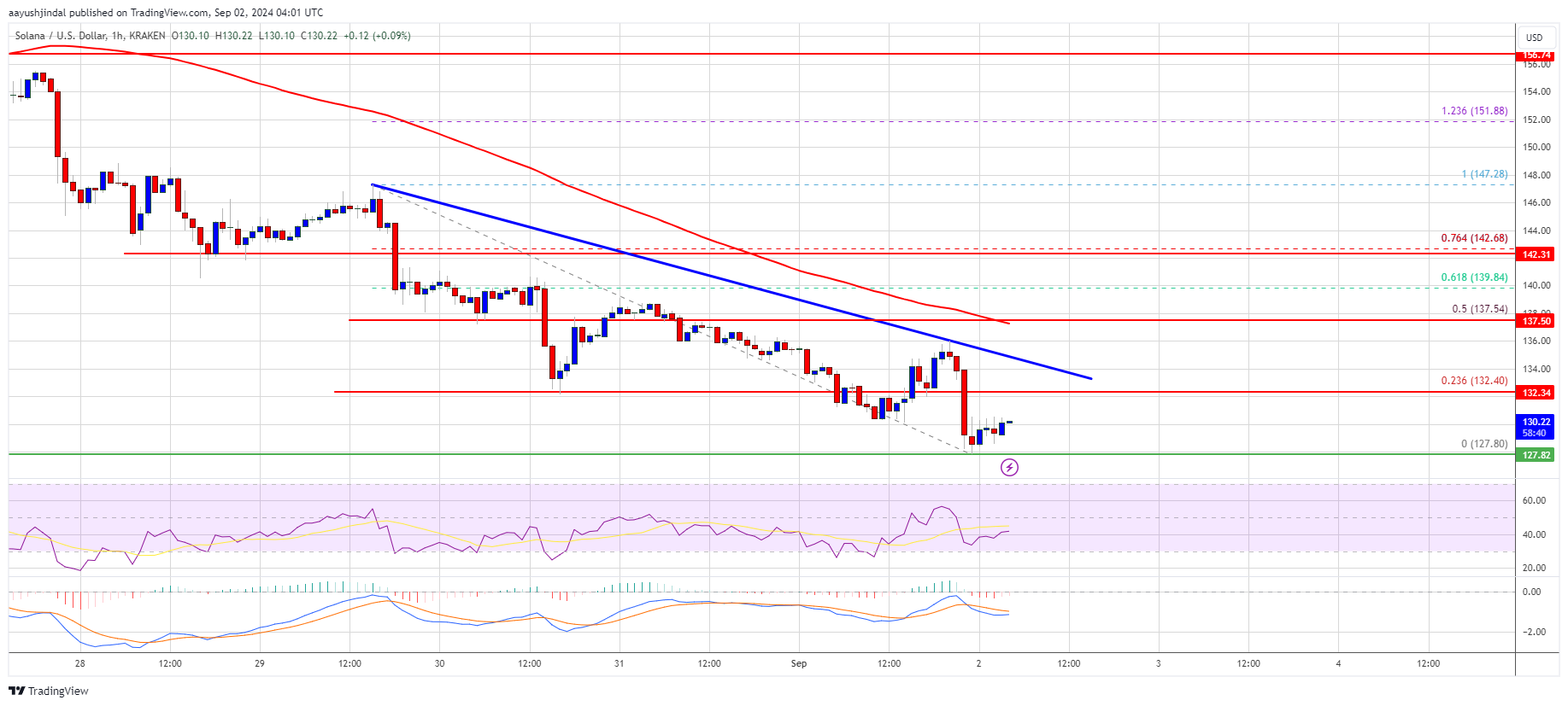 Solana started a fresh decline below $150 and $142. SOL price tested $128 and is currently struggling to start a recovery wave.
