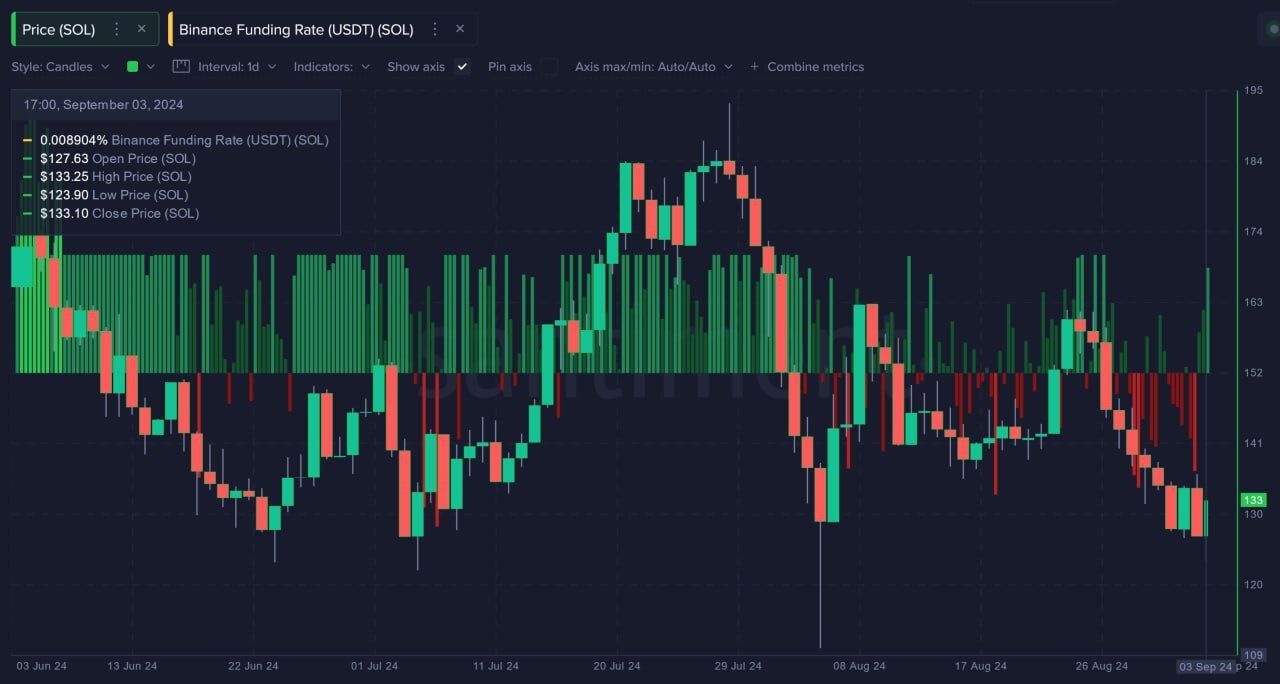 A key factor in assessing Solana’s potential recovery is the recent negative turn in the funding rate. This metric, which tracks the cost of holding positions in the futures market, often signals shifts in market sentiment.