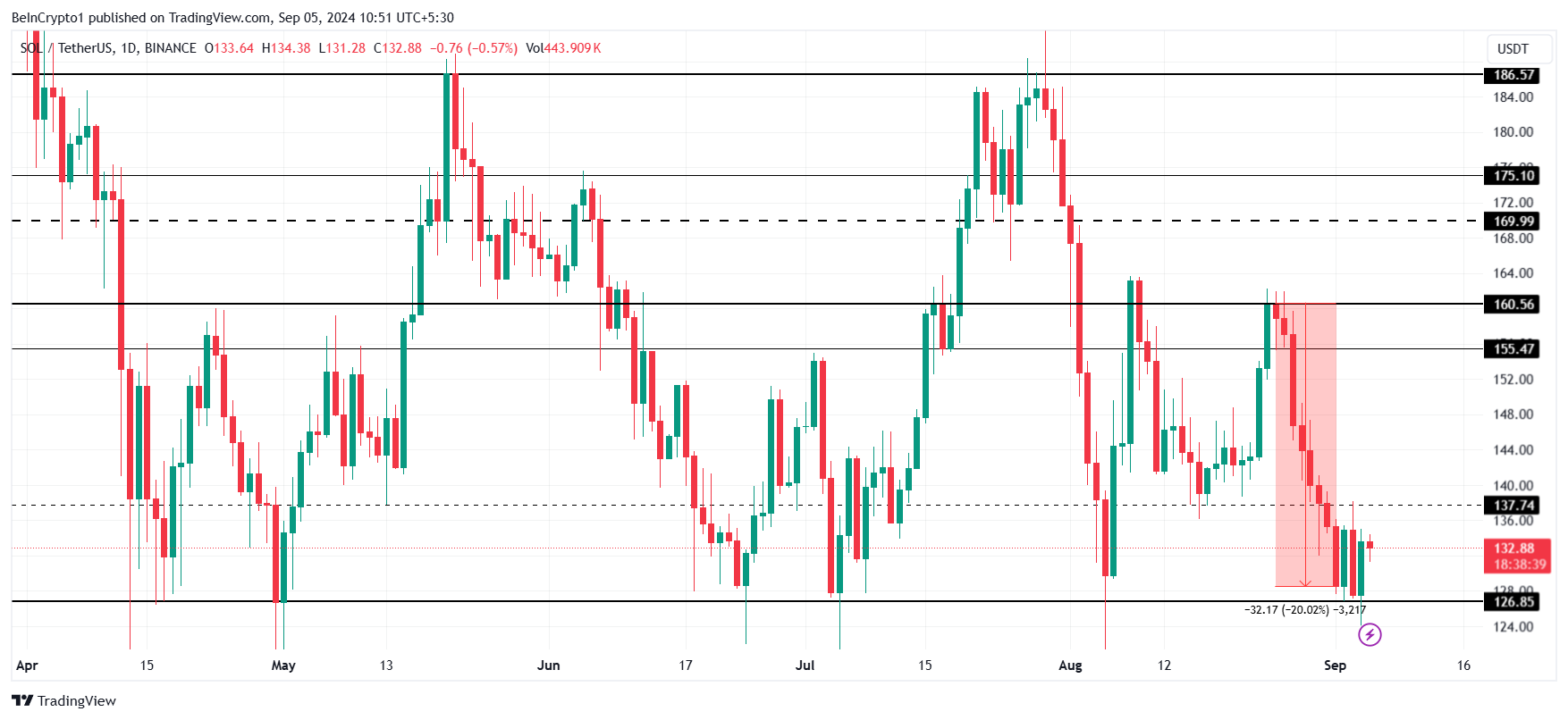 Solana’s (SOL) price has faced notable volatility in recent weeks, struggling to overcome resistance at $160. After multiple failed attempts to breach this level, SOL experienced a significant 20% drawdown towards the end of August.