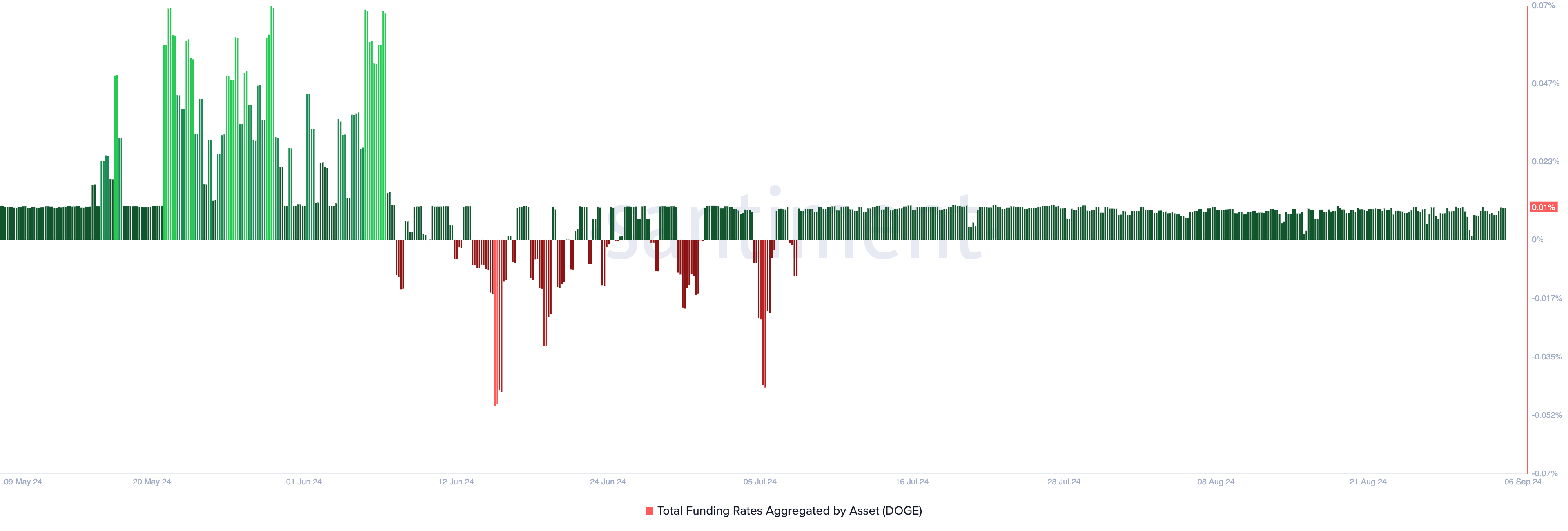 Despite DOGE losing half its value over the past six months, many futures traders remain undeterred and continue to open long positions. This confidence is reflected in the meme coin’s consistently positive funding rate since June. This is a mechanism used in perpetual futures contracts to ensure that the contract price stays close to the spot price.