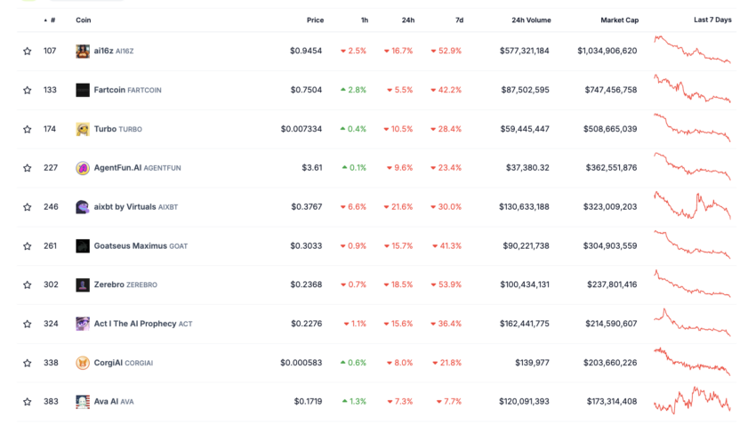According to CoinGecko, AI Meme Coins currently have over $5.8 billion in market cap size, with over $1.7 billion in 24-hour trading volumes. Currently, trending AI meme coins include ai16z, Fartcoin, and Turbo. Among this week’s top gainers were President.exe, WibWob, and Truth Terminal’s Hentai.
