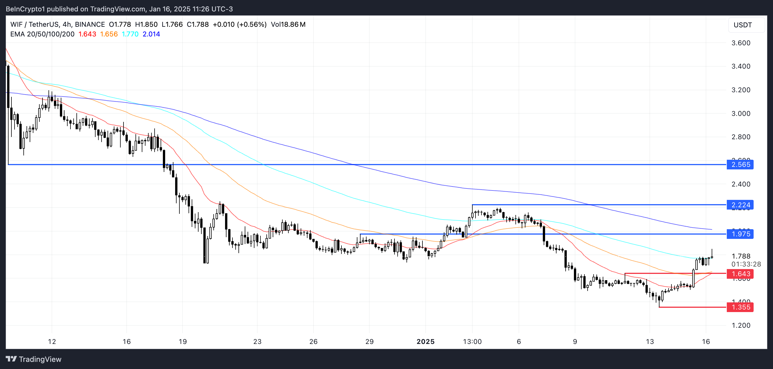 However, if bullish momentum fades and the trend reverses, WIF price could test the $1.64 support. A break below this critical level might lead to a deeper decline, with $1.35 as the next major support zone.