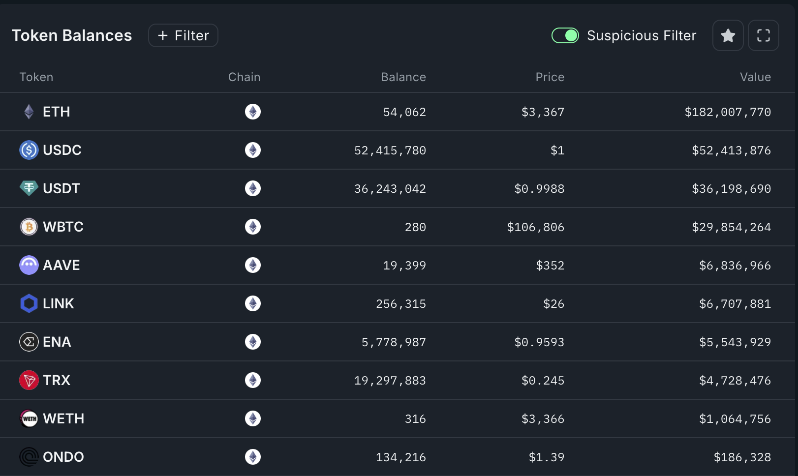 WLFI also owns Ethereum (ETH) tokens worth $179 million, alongside other assets like USD Coin, Tether, Wrapped Bitcoin, AAVE, Ethena, and Tron. The total value of WLFI’s portfolio exceeds $322 million.