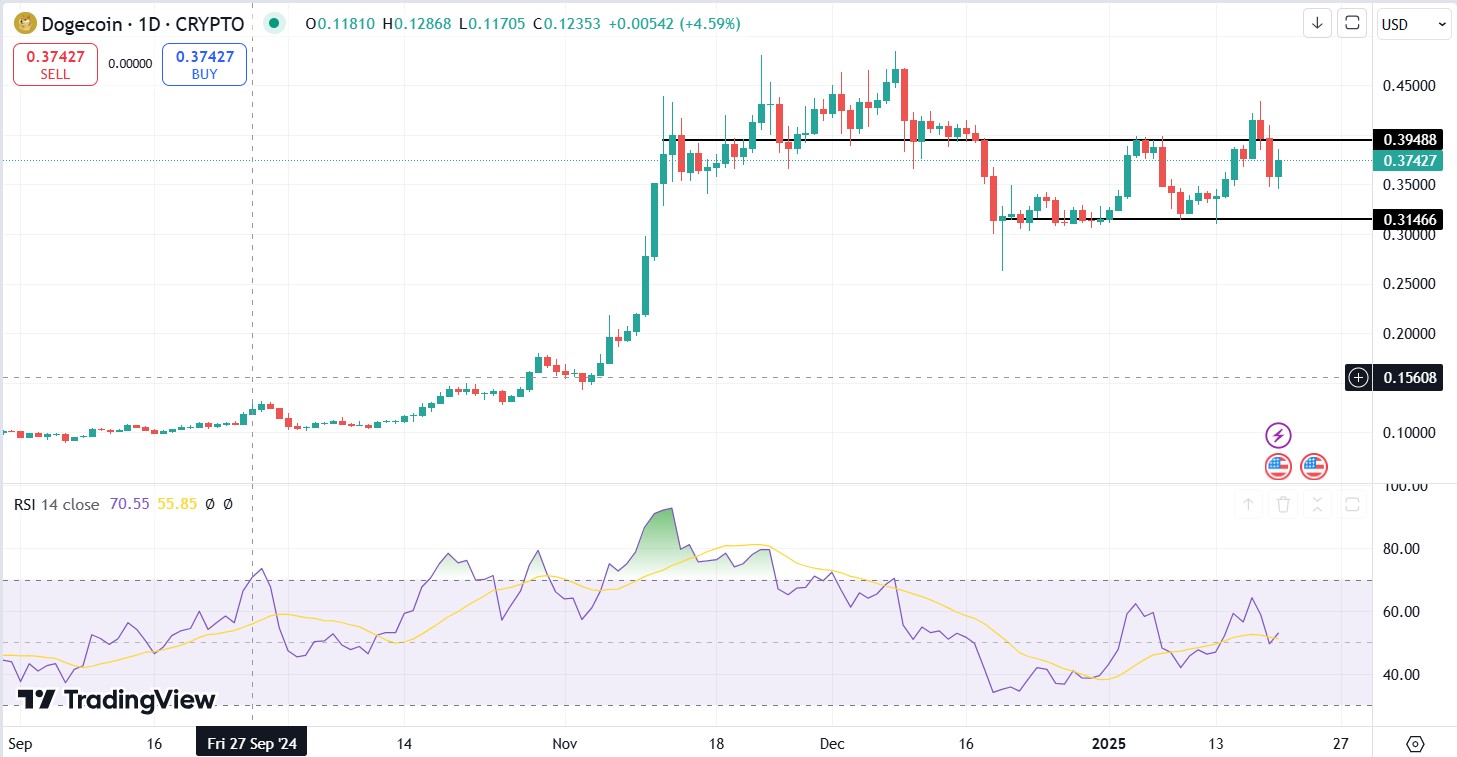 In a time of increased volatility in the cryptocurrency market, Dogecoin has been making significant moves. Despite Bitcoin's dramatic price swings, Dogecoin has been steadily hovering between $0.31 and $0.41 since January 1.