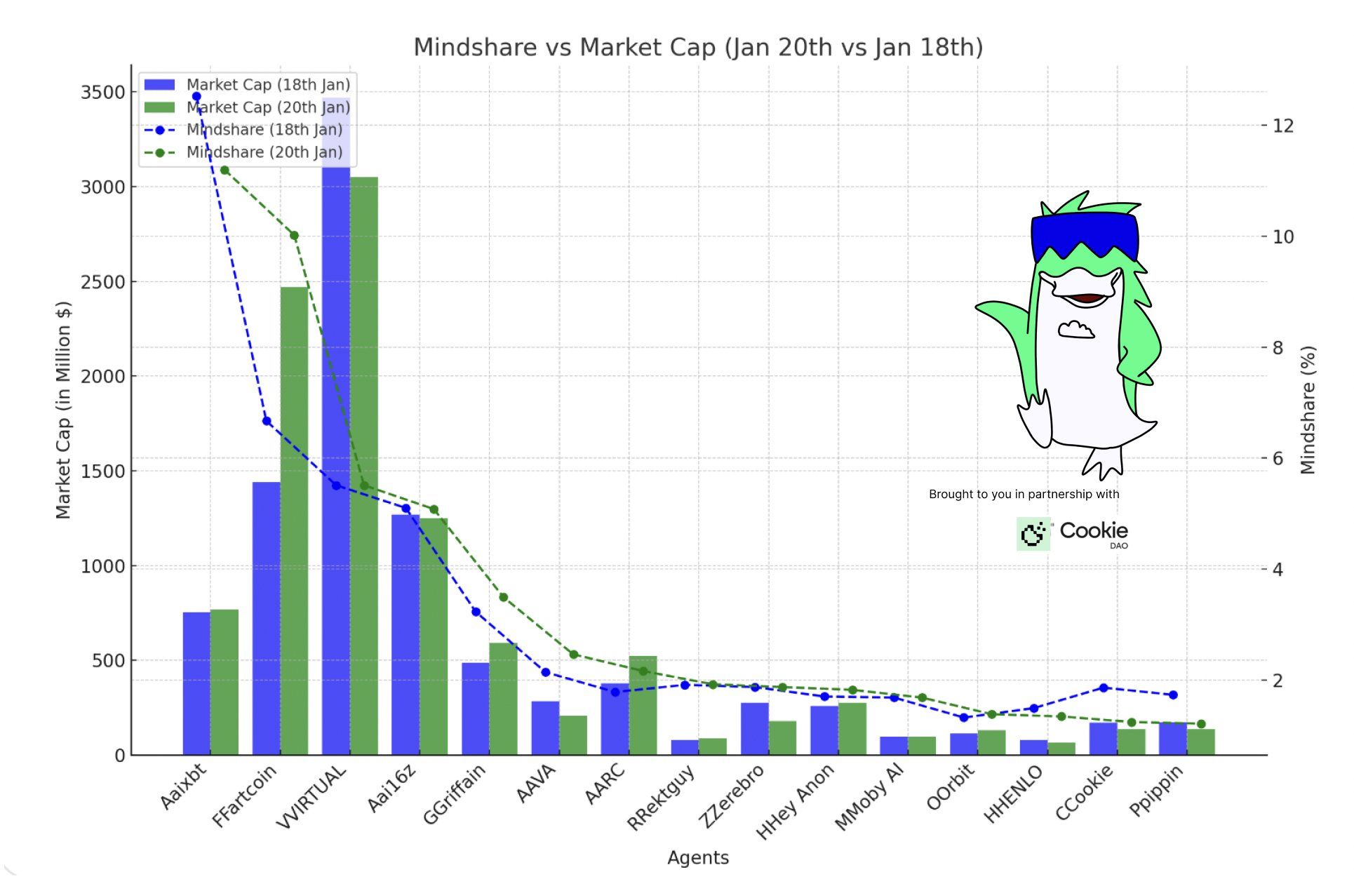 According to CoinGecko, the market cap of AI agent tokens fell after the Trump family tokens were listed over the weekend. At press time, it had dropped by over 11% to $12.6 billion.
