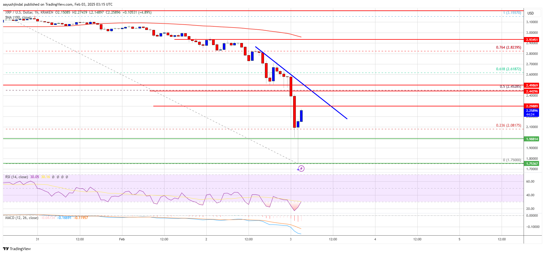 XRP price started a major decline below the $3.00 zone. The price is down over 25% and there was a spike below the $2.00 support zone.