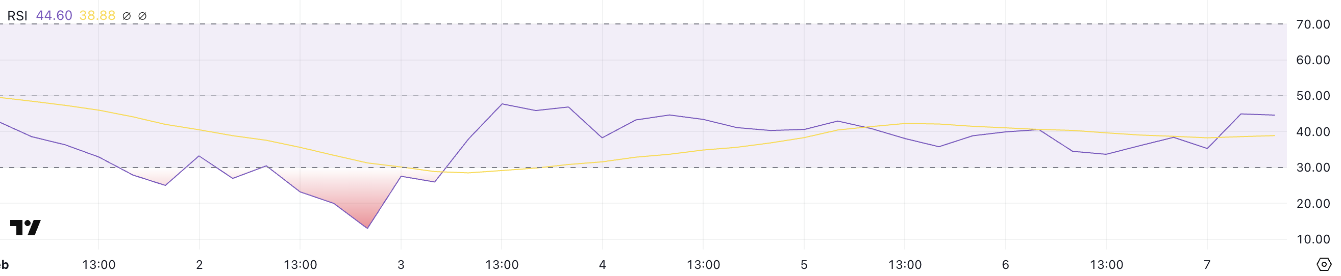 With the RSI now at 44.6, momentum is gradually shifting toward the upper end of the neutral range.