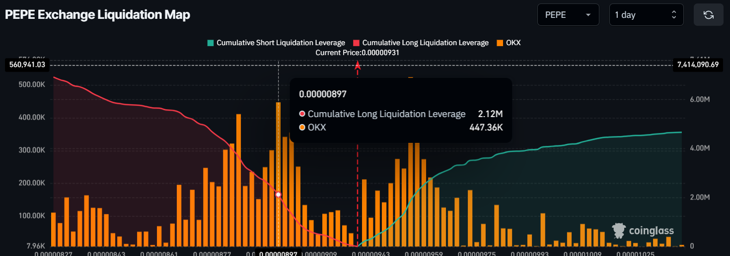 At press time, traders holding long positions were over-leveraged at $0.00000897, with $2.15 million worth of long positions. Traders holding short positions were over-leveraged at $0.00000955, with $1.80 million worth of short positions.