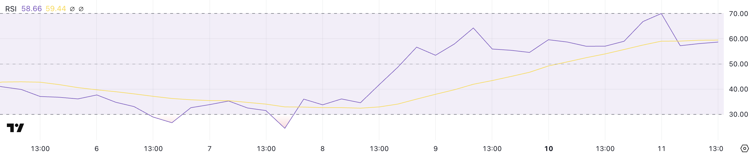 Readings above 70 suggest overbought conditions and a potential pullback, while values below 30 indicate oversold conditions and the possibility of a rebound.