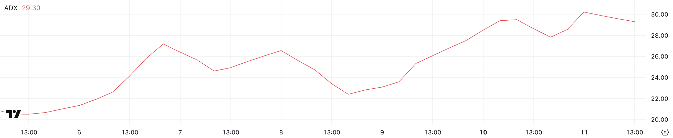 PinLink ADX is currently at 29.3, slightly down from 30.2 a few hours ago, after surging from 22.4 just three days ago. The Average Directional Index (ADX) is a key indicator used to measure the strength of a trend rather than its direction.