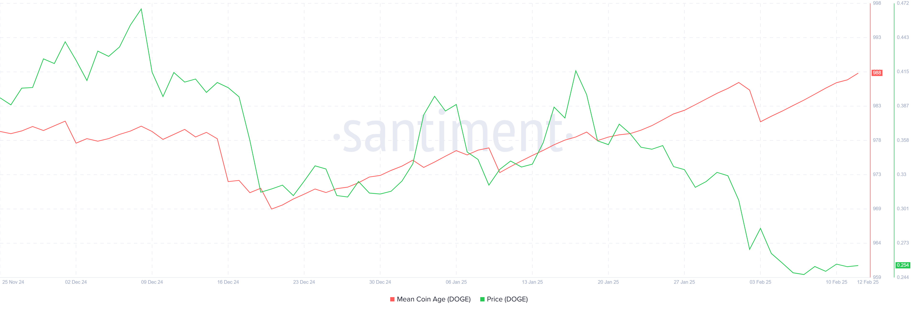 The Mean Coin Age (MCA) indicator is showing a noticeable uptick, signaling that long-term holders are refraining from liquidating their DOGE. Instead, these investors are maintaining their positions, which is a good sign for Dogecoin’s price stability. Their continued holding behavior suggests they are confident in a potential recovery.