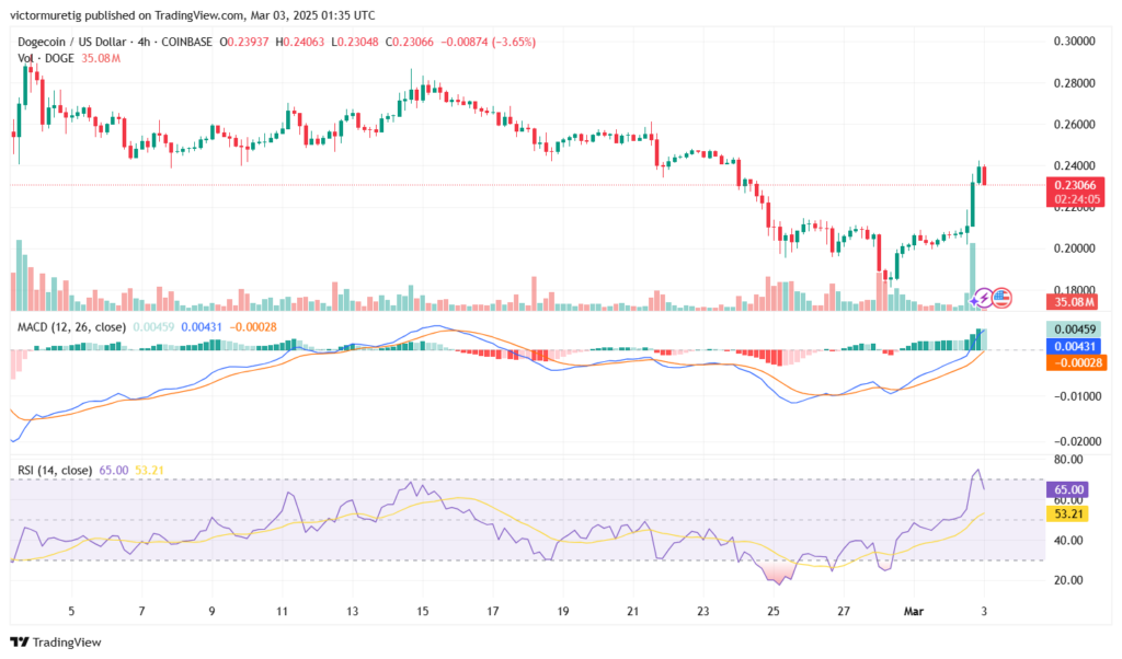 Dogecoin’s recent surge to $0.2354, up 14.9% at press time, supports Ali’s bullish outlook for a potential $4 target if it holds above $0.16–$0.19. However, the RSI and MACD suggest caution, as momentum wanes after the rally. Therefore, the crypto could either climb toward $0.5 or higher with renewed buying pressure or retreat to retest $0.18–$0.20 support. The final verdict? it’s future hinges on sustained volume and market sentiment, but its volatile nature keeps the $4 target tantalizing yet uncertain.