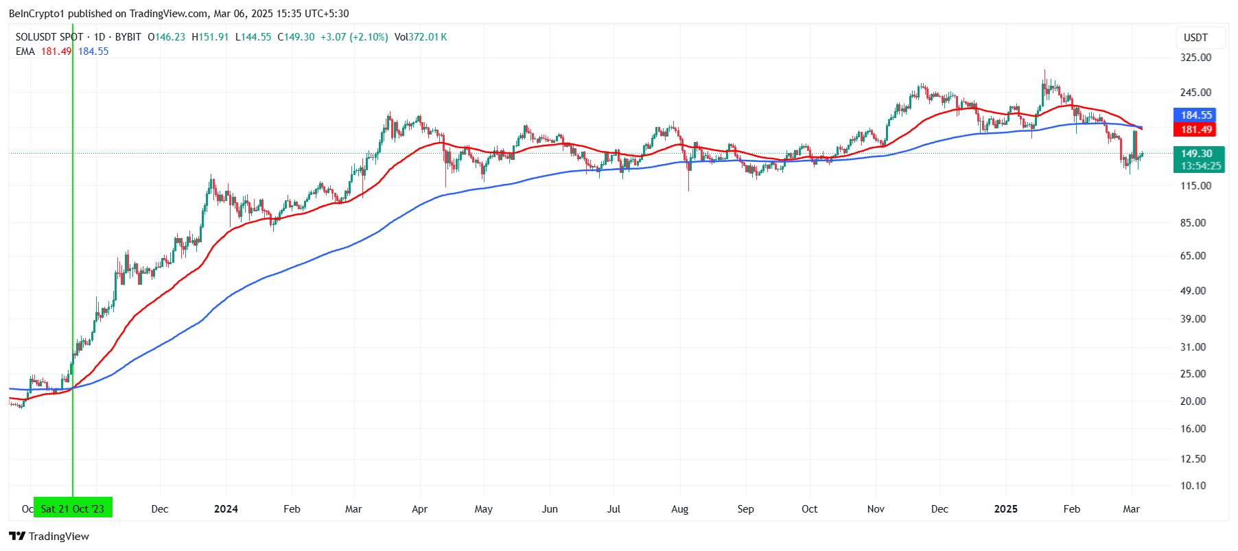 At the time of writing, Solana’s price stands at $149, about 23% away from the critical resistance of $183. While the altcoin remains above $137, it will struggle to regain upward momentum unless it can breach this resistance level. Without a reversal at this level, Solana could remain trapped within its current downtrend.