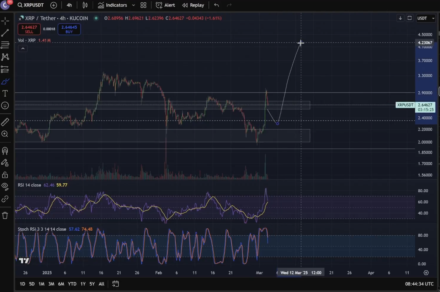 Notably, as XRP began its crash later in the day on March 2, CryptoInsightUK called attention to the 4-hour chart that day, suggesting that the bearish price action might continue for some time. At the time, XRP still held above the $2.6 price level. However, the analyst suggested that further drops below this level would ensue.