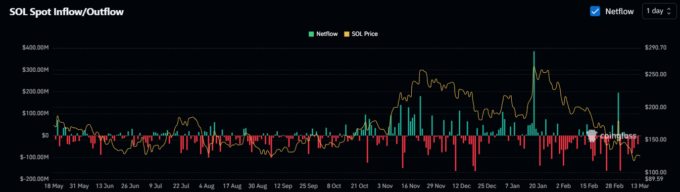 Spot outflows also demonstrated a decline after previously maintaining dominance since the start of January. However, a spot flows did not demonstrate a sharp shift in favor of inflows, confirming that the market was still uncertainty about SOL’s bullish prospects.