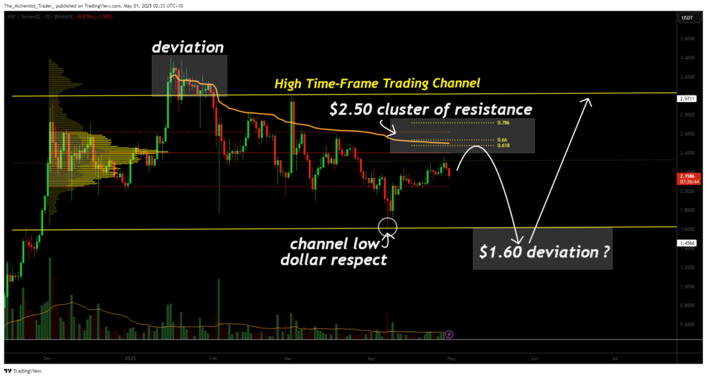 Currently, this downside deviation hasn’t materialized, but if resistance at $2.50 continues to hold and sellers step in, the probability of this setup increases. A clear rejection could send XRP back down to the channel’s lower bounds, potentially offering another opportunity for bulls if support holds again.