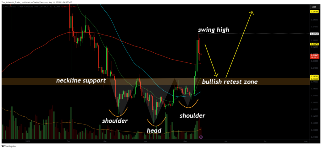 Dogecoin has confirmed a bullish head and shoulders breakout, with the neckline now acting as critical support. A successful retest could ignite the next major rally in DOGE price action.