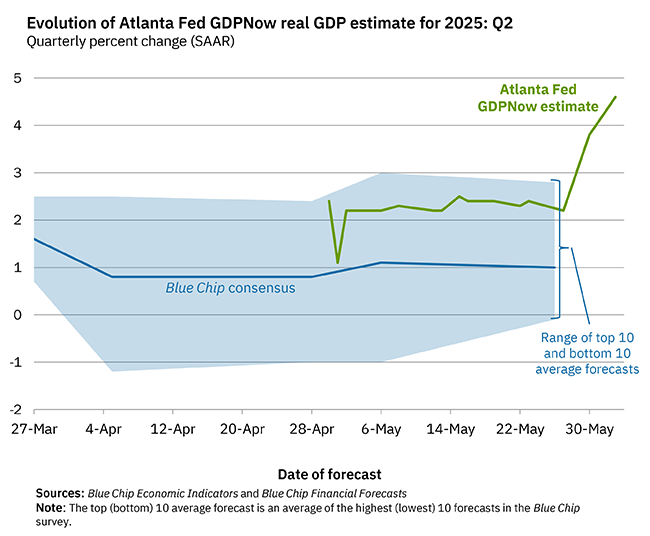 Despite bearish Q1 predictions, the Atlanta Fed is currently estimating that the US GDP in Q2 2025 will increase by 4.6%. This impressive turnaround could signal new inflows to crypto.