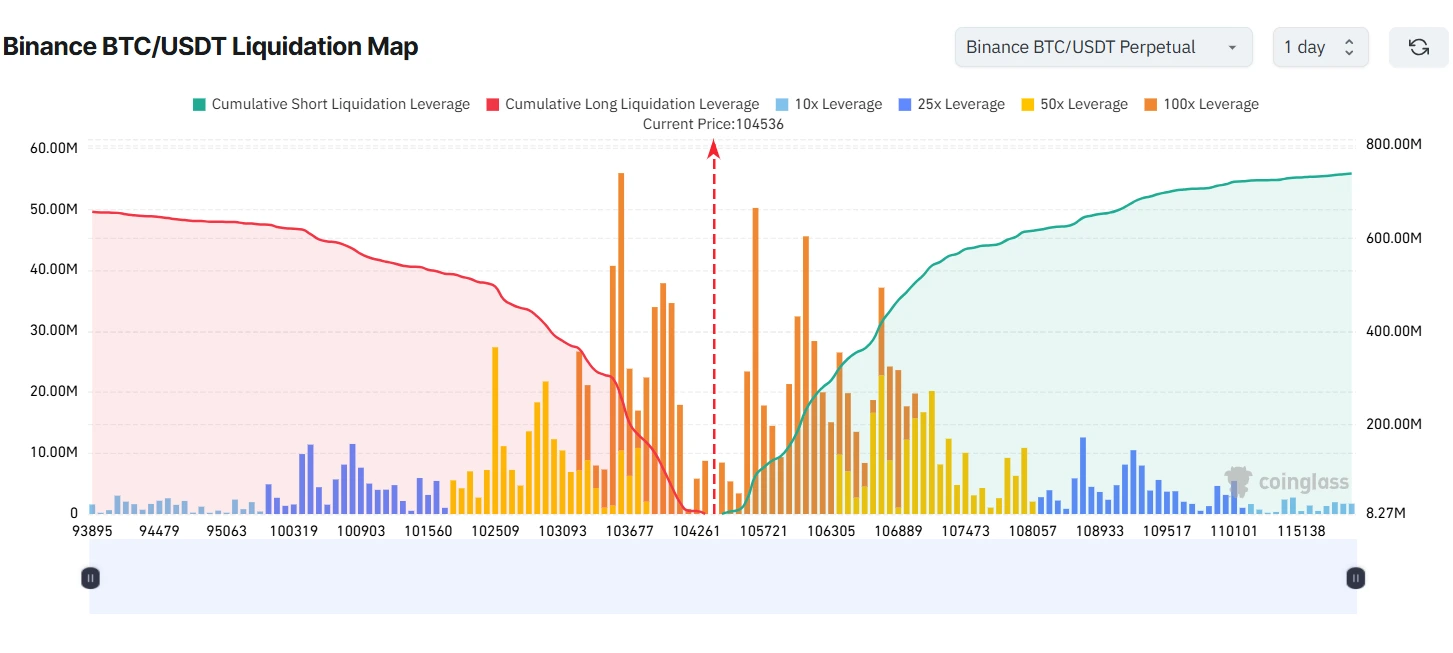 Bitcoin’s steady rise, shown in the chart, has been marked by spikes in short liquidations. This classic short squeeze phenomenon reflects high-leverage traders betting against BTC’s rally, only to be liquidated as BTC crossed $100k+, driven by institutional momentum from the ETF narrative.