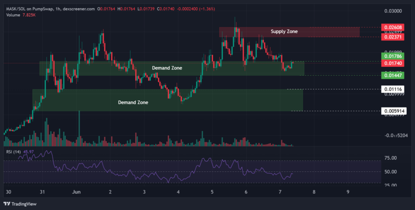Meanwhile, a brief analysis shows the MASK token price was trading within a demand zone between $0.01786 and $0.01447 at press time.