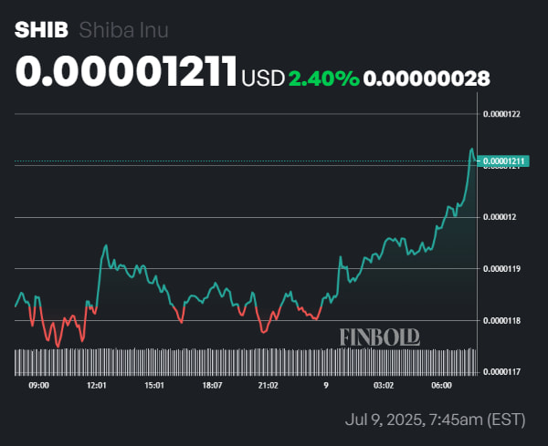 Meanwhile, Shiba Inu was priced at $0.00001211 at press time, with a market cap of $7.14 billion.