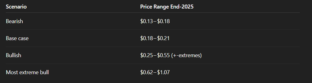 In addition, the artificial intelligence (AI) suggested a potential price range between $0.13 and $1.07 by the end of 2025, an up to 529% increase from the current price, but cautioned that the token lacks any new utility beyond meme status, being too reliant on social media hype.