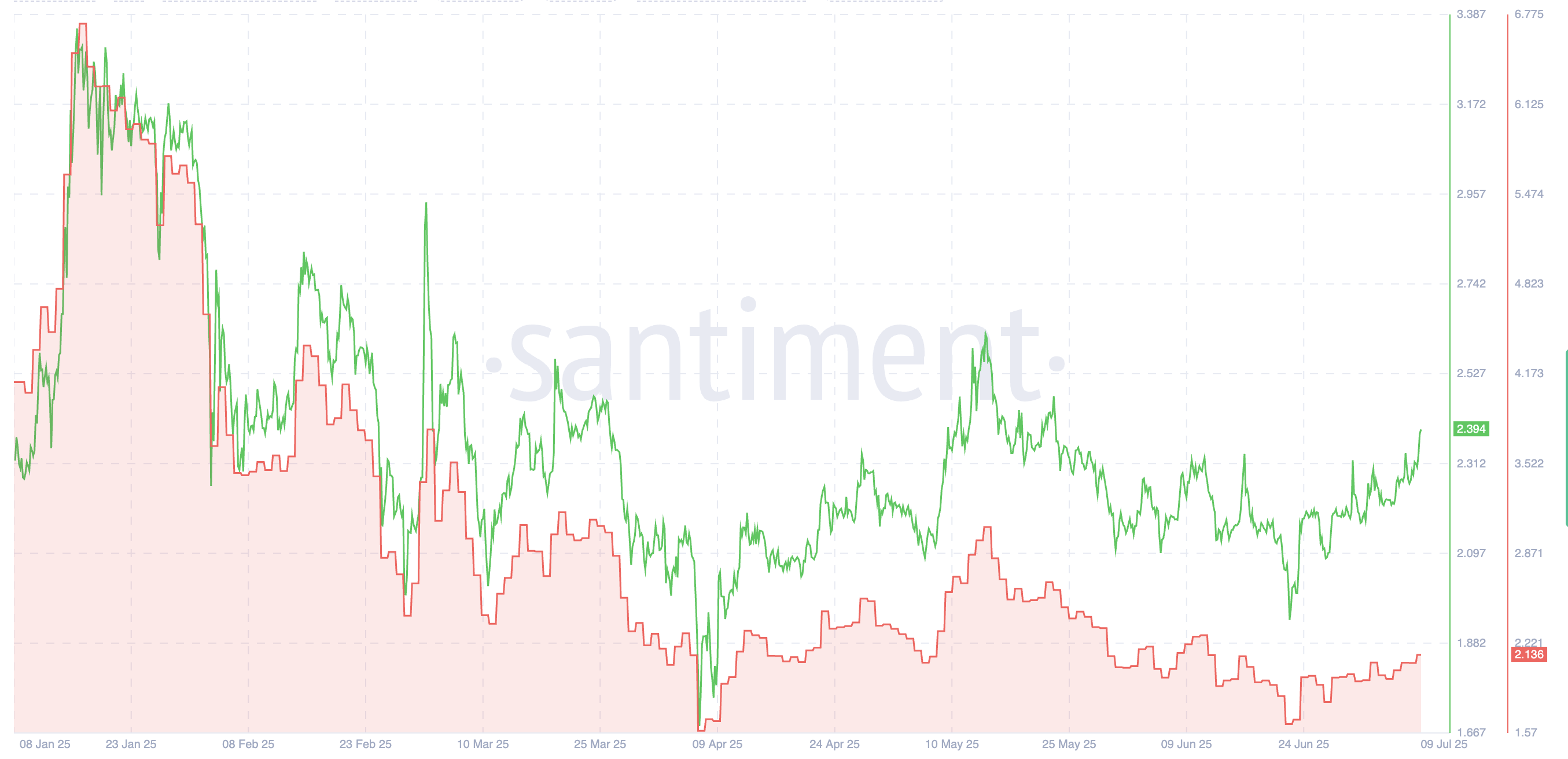 This means XRP is not overvalued, and the current price action is likely backed by a healthy demand-supply dynamic. This positioning supports the case for continued upward movement, especially since the score has been gradually rising, reflecting increasing market confidence.