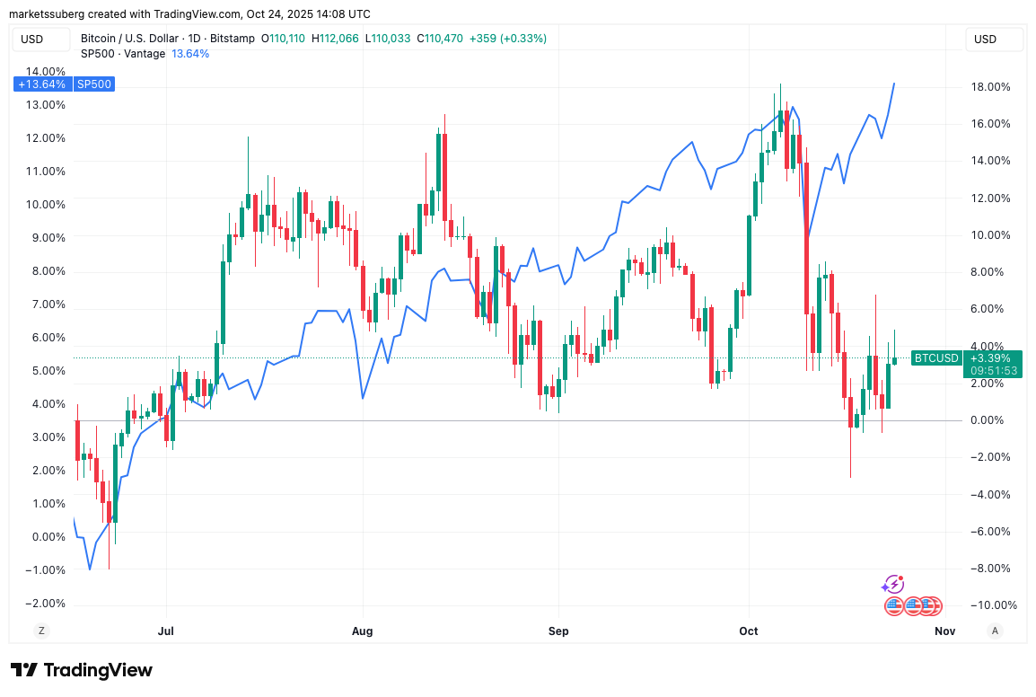 Биткоин (BTC) снова проявил волатильность 24 октября после выхода данных по инфляции в США, которые оказались ниже прогнозов. Несмотря на рост фондового рынка до новых максимумов, цена актива не смогла удержать импульс.
