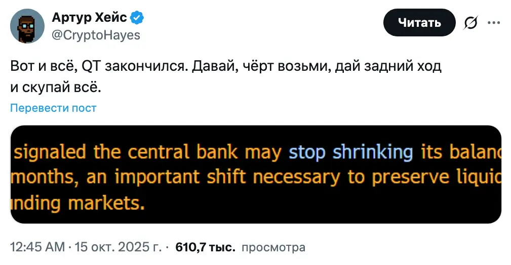 Дополнительным фактором стало недавнее решение ФРС прекратить программу количественного ужесточения с 1 декабря. Количественное ужесточение представляет собой процесс сокращения баланса центрального банка. Его цель — охладить перегретую экономику и предотвратить слишком быстрый рост инфляции.